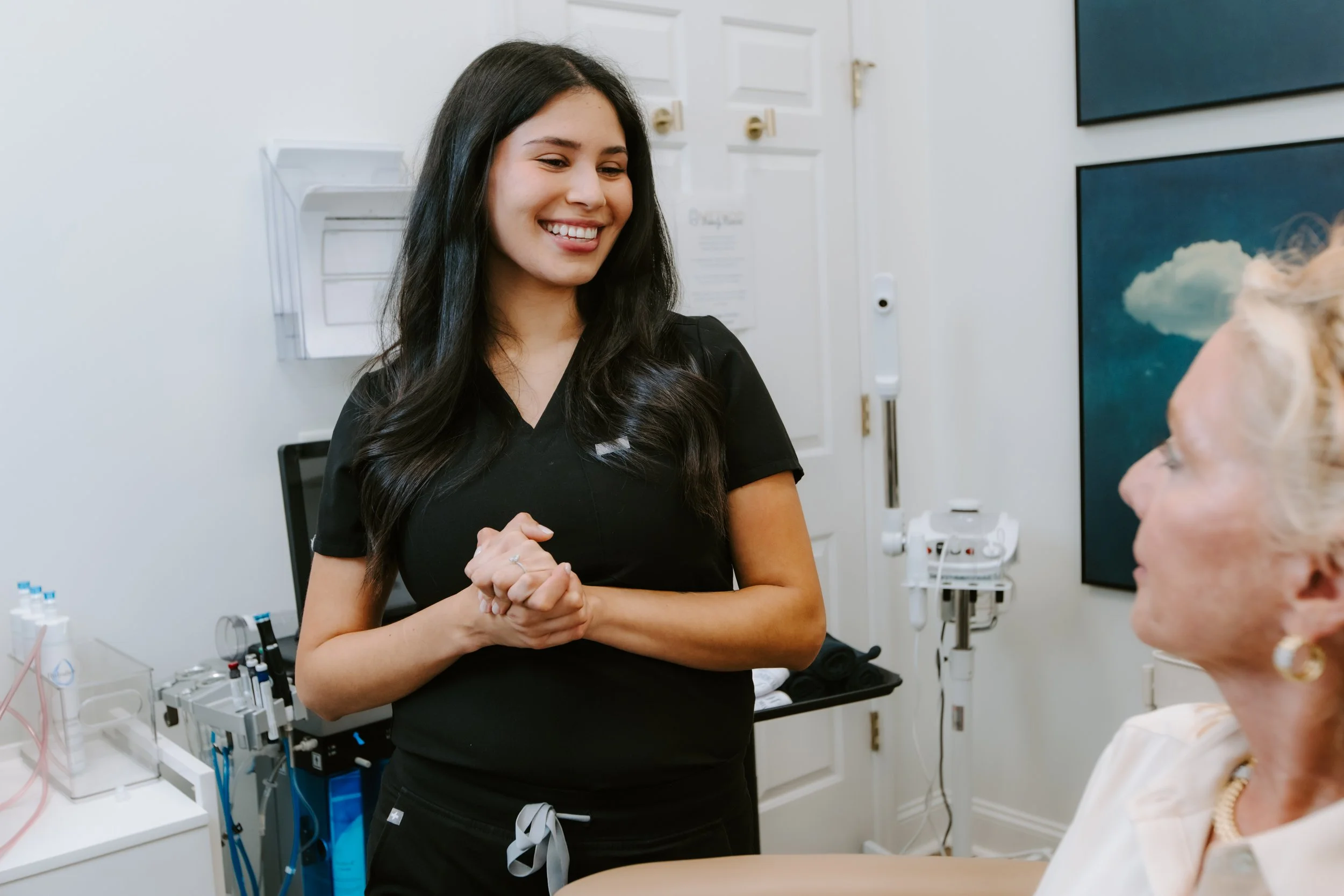 Some brightening result will be visible immediately following treatment, and skin quality will continue to improve throughout the following weeks. Treatment is performed weekly for 4 weeks, then touch-ups can be performed every 4-12 weeks as needed.